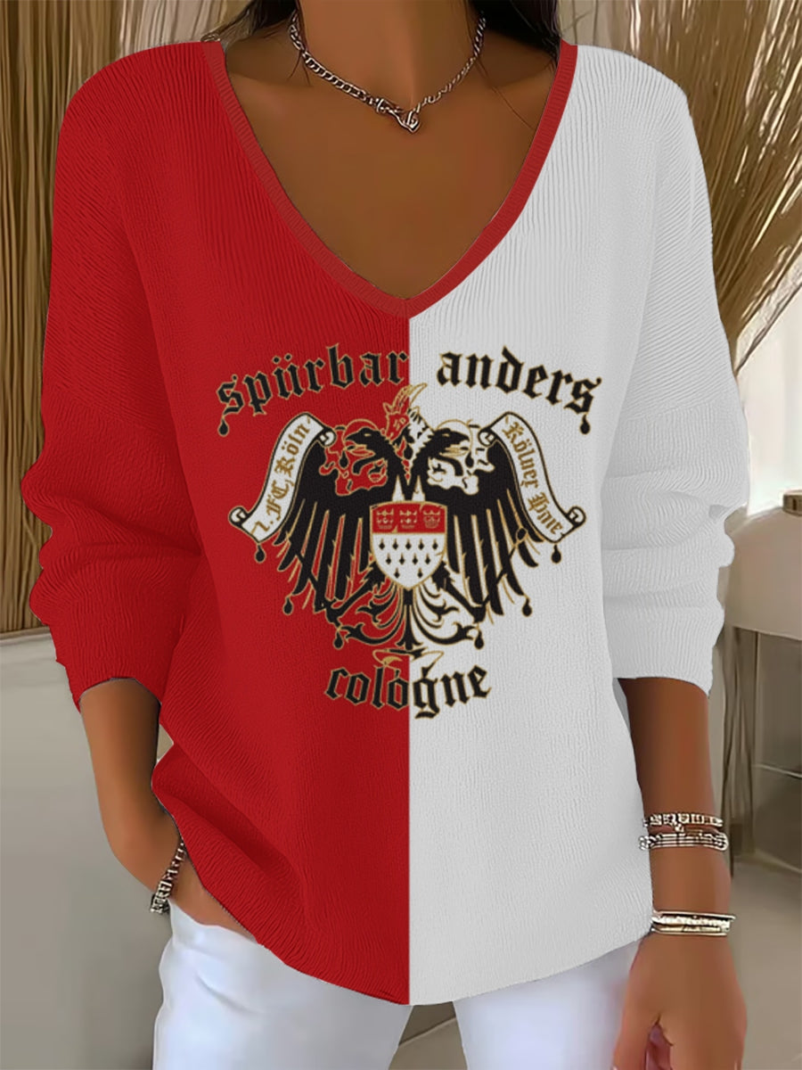 Damen Kölner Karneval V-Ausschnitt gerippt Top