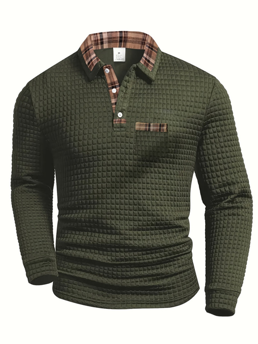 Herren-Oberteil mit Plaid Waffel-Langarm