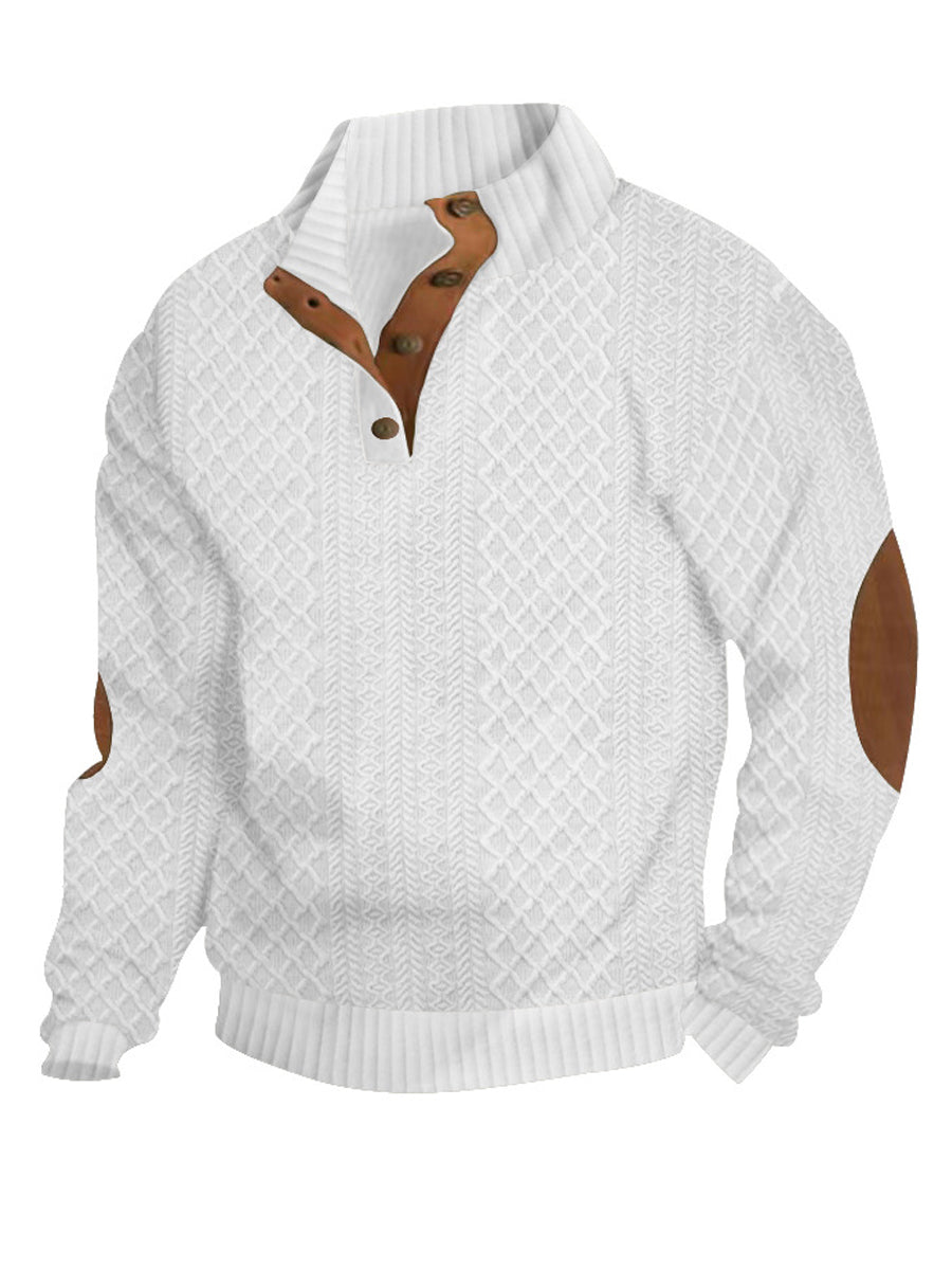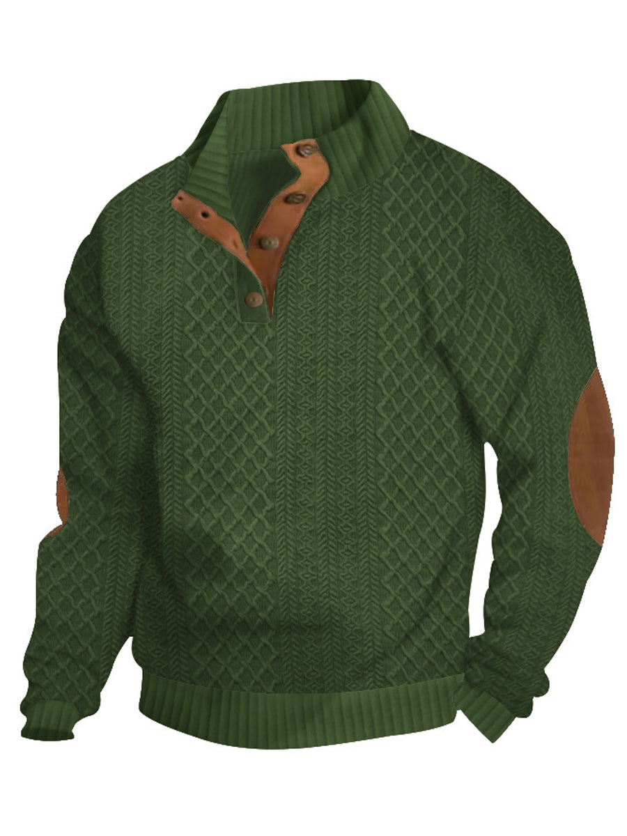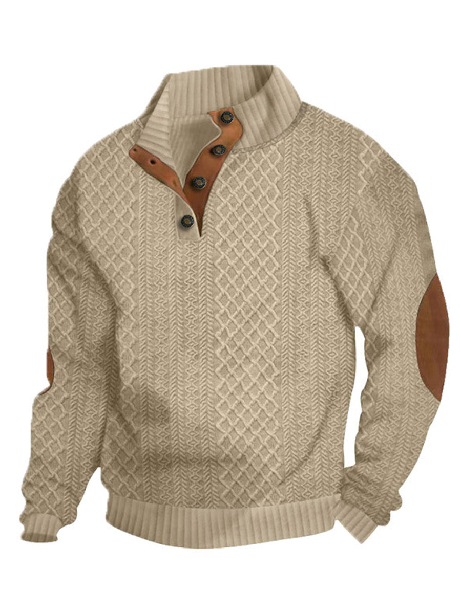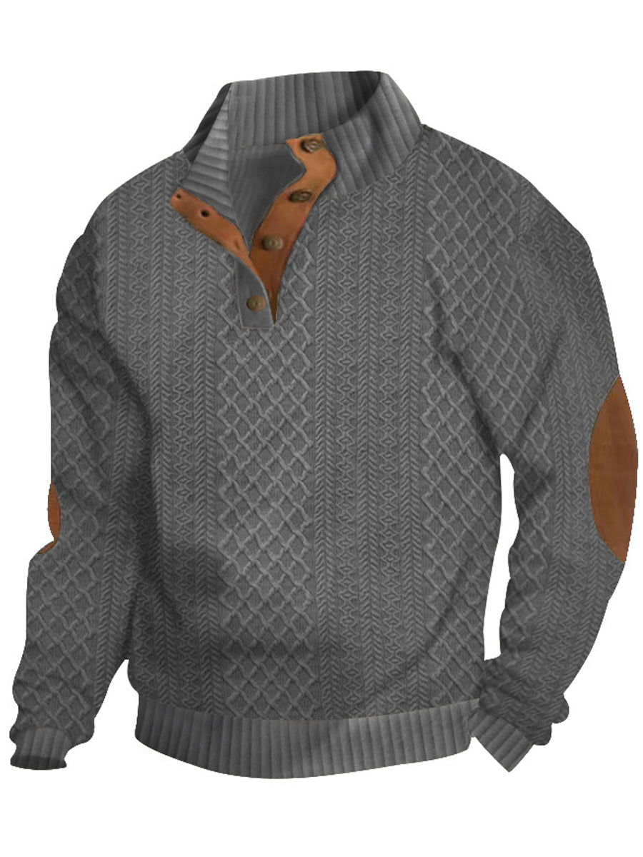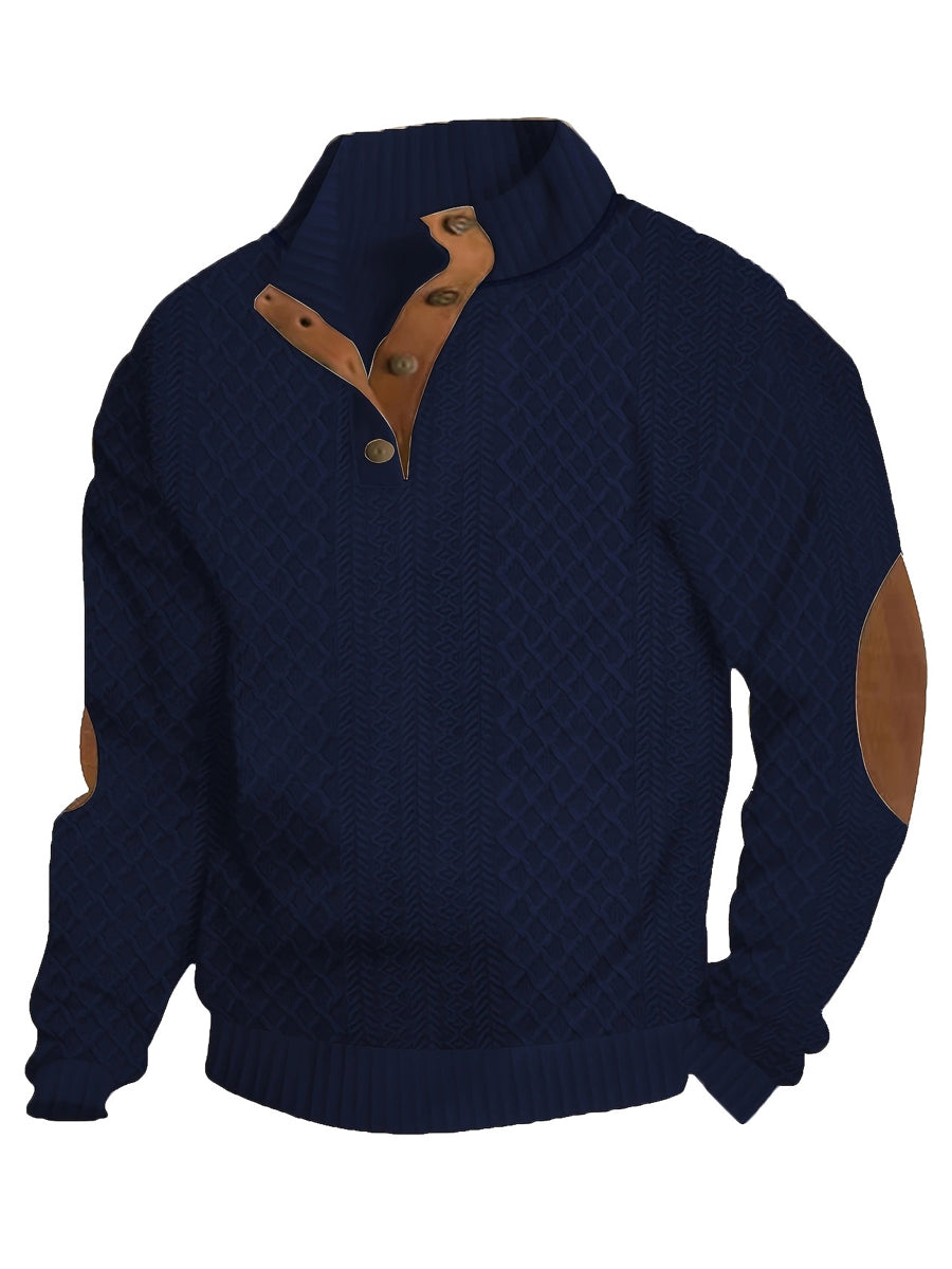 Herren-Pullover mit warmen Strick-Jacquard-Lässige Knöpfe