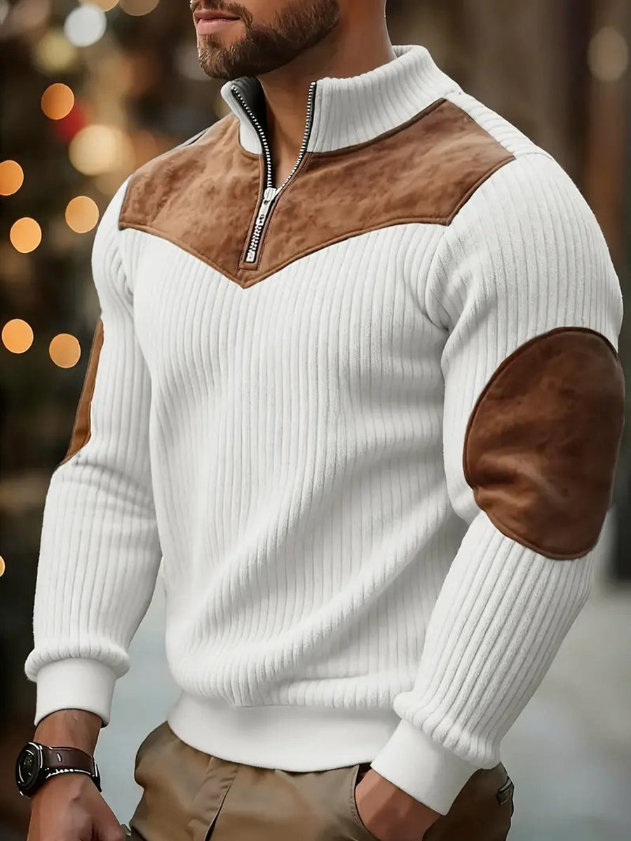 Herren warmer, farblich blockierten, beiläufiger Pullover mit Reiß verschluss