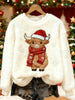 Women's Cute Christmas Highland Cow Print Casual Flannel Sweatshirt