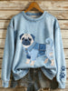 Women's Denim Patchwork Art Pug Dog Pattern Sweatshirt