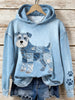 Women's Denim Patchwork Art Schnauzer Dog Pattern Hoodie